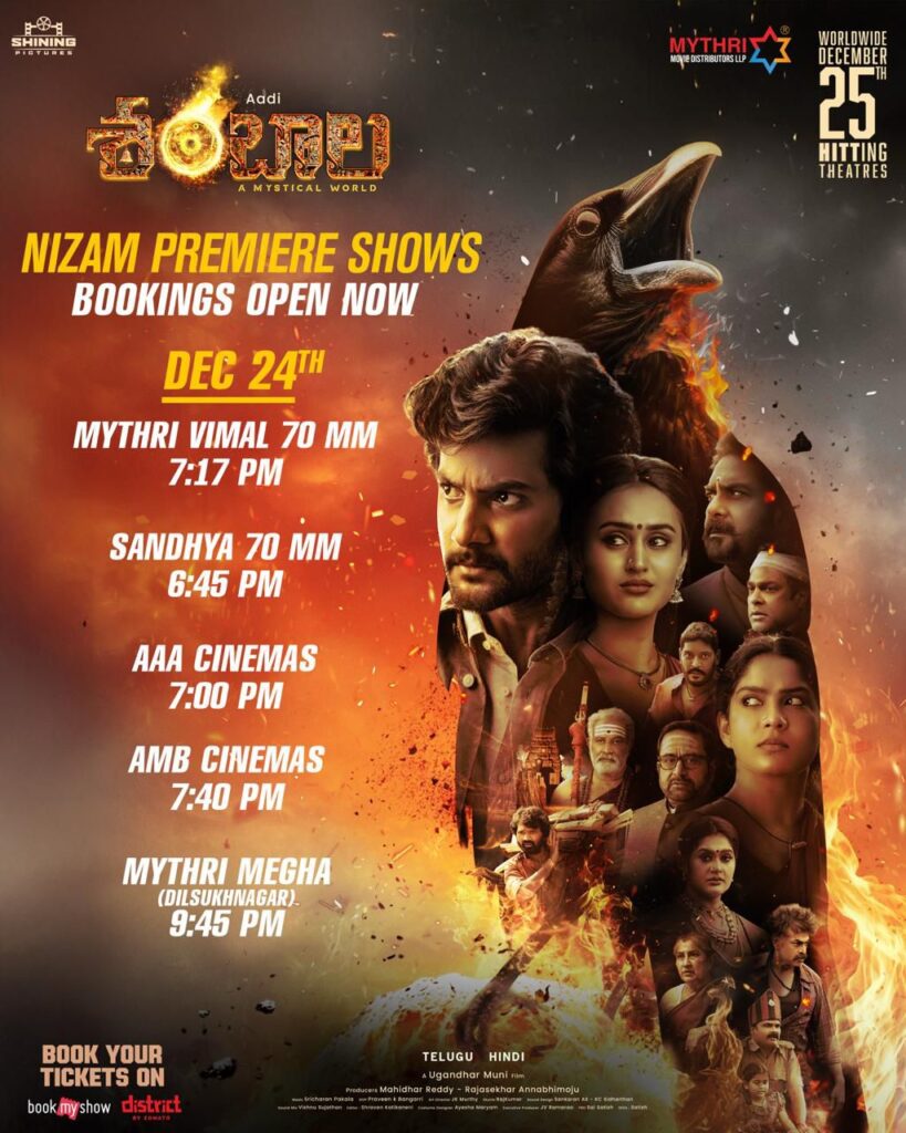 Trade circles predict a solid opening, with Shambhala poised to emerge as the biggest opener of Aadi Saikumar’s career.Archana Iyer plays the female lead opposite Aadi, while the film also features Swasika, Ravi Varma, Madhunandan, and Siva Karthik in pivotal roles.The film is backed by a technically accomplished crew, with JK Murthy overseeing art direction, Praveen K Bangari handling cinematography, and Sricharan Pakala composing the music.