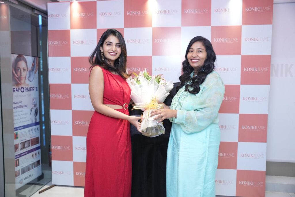 ”The grand launch of Koniki Luxe Skin Care was inaugurated by actress Ananya Nagalla at Koniki Salon, located on Road No. 45, Jubilee Hills, Hyderabad. This new initiative is introduced under the expert leadership of dermatologist Dr. Alekhya Reddy, ensuring advanced and professional skincare solutions.