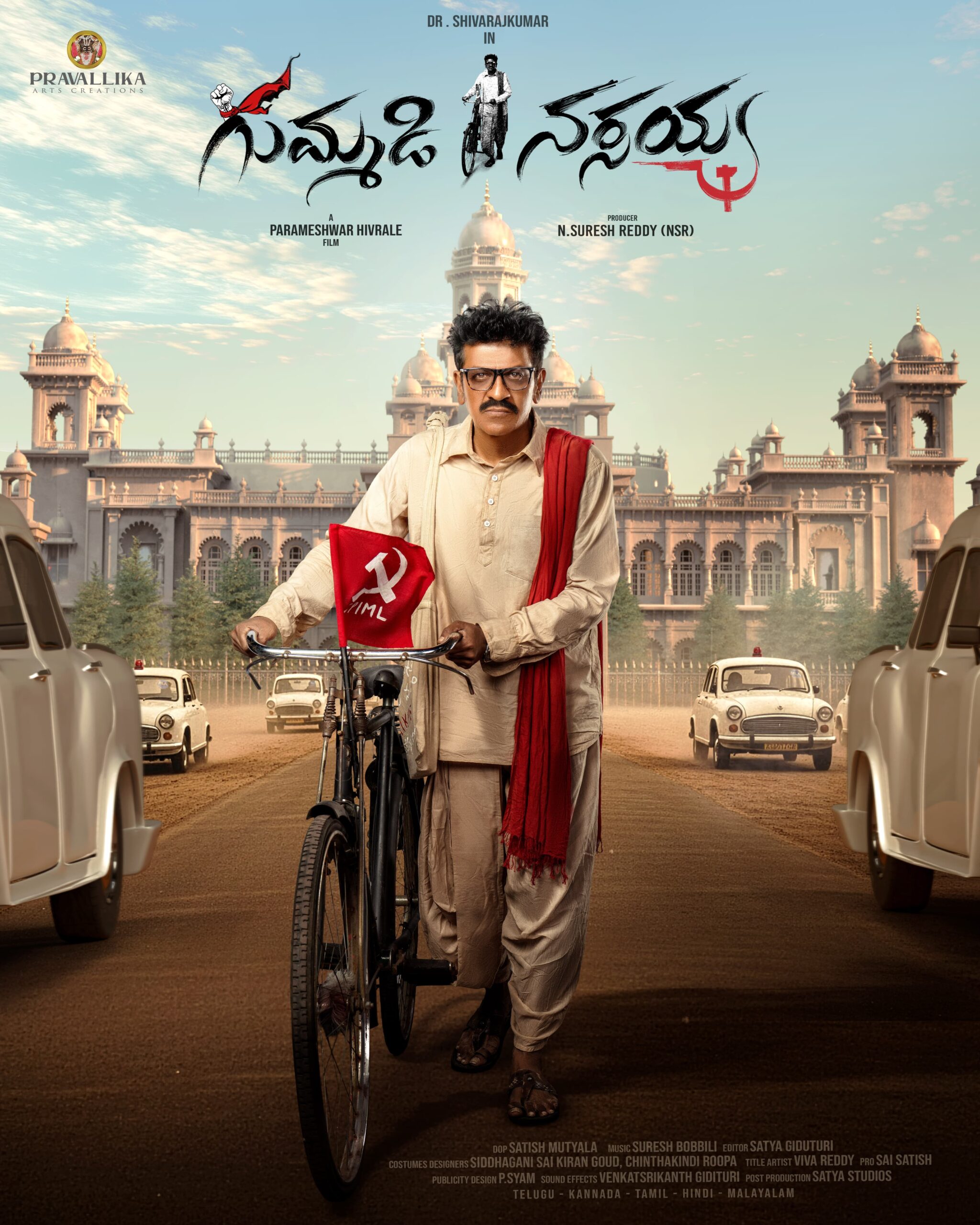 Beloved politician and people’s leader Gummadi Narsaiah needs no formal introduction. A stalwart of grassroots politics, Narsaiah served as the Member of Legislative Assembly for Yellandu across multiple terms, between 1983 to 1994 and again from 1999 to 2009, winning as an Independent. Known for his unwavering commitment to the common man, he earned the love and respect of his constituency as a true “people’s man.”Bringing his remarkable life to the silver screen is the upcoming biopic titled Gummadi Narsaiah, with Kannada superstar Dr Shiva Rajkumar portraying the titular role. The film marks the directorial debut of Parameshwar Hivrale, who steps behind the camera after a successful stint as an actor. This ambitious project is being bankrolled by N. Suresh Reddy (NSR) under the banner of Pravallika Arts Creations, making it the production house’s maiden venture.The makers today unveiled the first look poster, introducing Dr Shiva Rajkumar in a powerful yet understated avatar.
