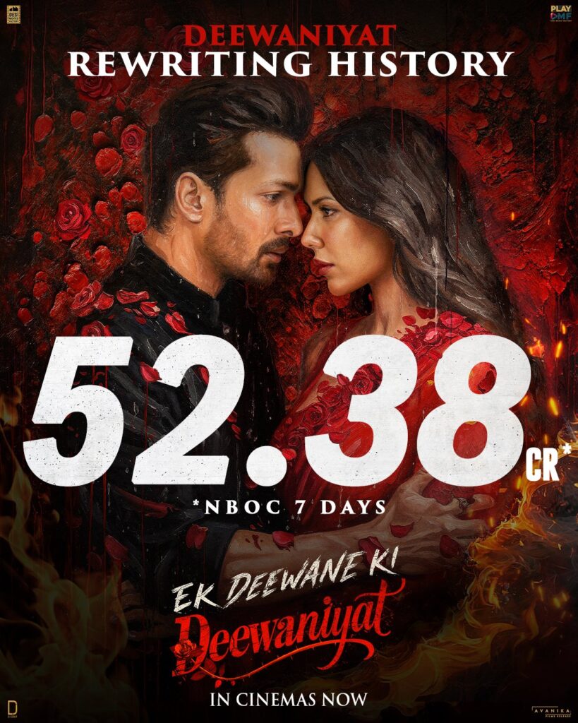 Romantic drama Ek Deewaneki Deewaniyat has officially cemented its place as a Super Hit at the box office, thanks to its excellent hold on Monday. After a festive Diwali weekend, the film managed to collect a solid ₹4.04 crore on Day 7, showing only a minimal drop from its previous days.The film’s week-one total now stands at an impressive ₹52.38 crore nett, marking a tremendous achievement for a romantic entertainer released amidst multiple big films.