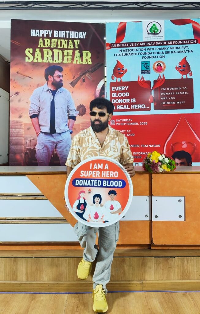 Tollywood actor, producer, entrepreneur, and philanthropist Abhinav Sardhar marked his birthday this year in a meaningful and compassionate way. Instead of conventional celebrations, the Abhinav Sardhar Foundation took the noble initiative of organizing a special blood donation camp in support of the Thalassemia & Sickle Cell Society.