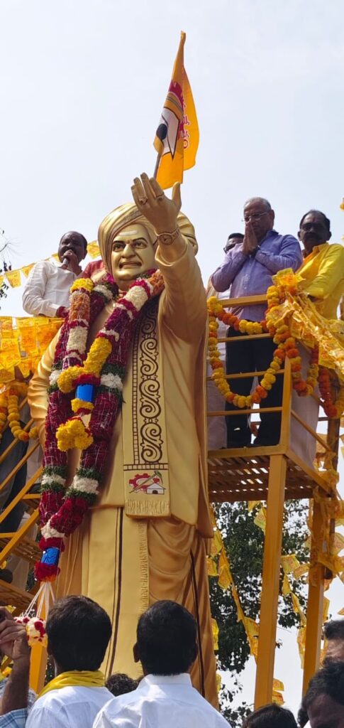 “Today is an auspicious day. After our government was formed, it is a proud moment for me to unveil the statue of Sri Nandamuri Taraka Rama Rao garu along with respected elders Mohana Krishna garu and Mohana Roopa garu. It is because of NTR garu that Backward Classes gained political empowerment and recognition. I wish to see his statue installed in every village. With the support of our cadre, we will continue organising more such installations to honour his legacy.”