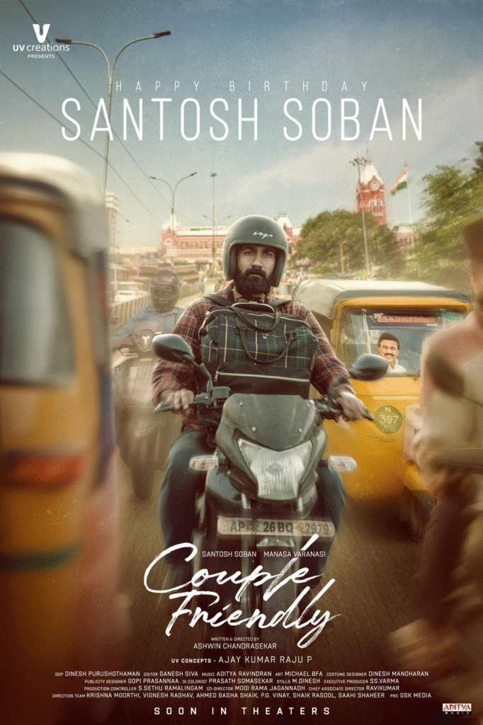 On the occasion of Santosh Sobhan’s birthday today, the makers released a special poster extending their wishes. The poster features Santosh Sobhan as a middle-class Telugu boy living in Chennai. Set against the backdrop of Chennai city, this romantic story promises to offer audiences a fresh and unique cinematic experience. With all production activities completed, “Couple Friendly” is gearing up for release soon in both Telugu and Tamil.
