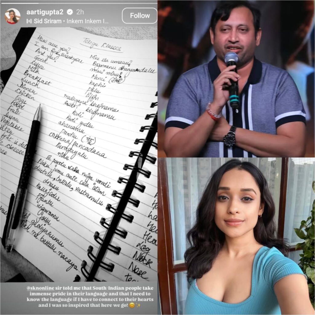 Taking his words to heart, actress Aarti Gupta has begun learning Telugu. She even shared a photo on social media showing her studying the language. Netizens are applauding producer SKN for motivating Aarti Gupta and promoting love for the Telugu language.