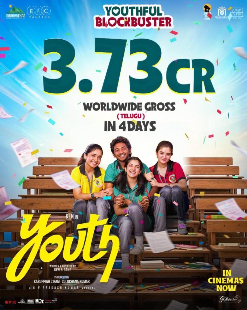 Made as a vibrant youth entertainer, “Youth” has received a strong response from Telugu audiences. Within 4 days, the movie has grossed ₹3.73 crores worldwide. Along with engaging entertainment for young viewers, the film also appeals to family audiences with its emotional elements. It is expected to post strong numbers at the box office during its first week.