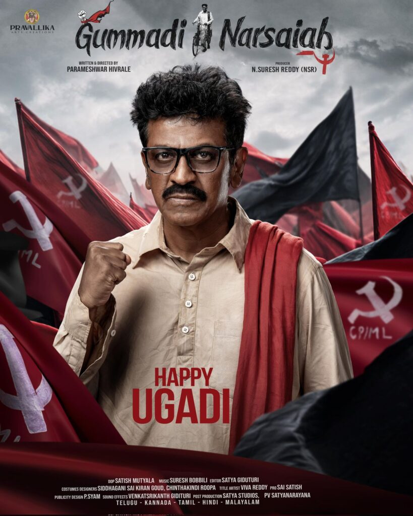 On the occasion of Ugadi, the makers unveiled an intense and powerful poster showcasing a commanding portrayal of Dr. Shiva Rajkumar as the revolutionary leader Gummadi Narsaiah.
